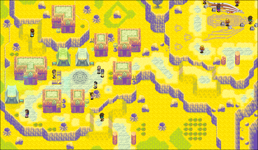 If whatever has brought you to Weyard has deposited you in Tolbi, you will instead find yourself in a large, new city. Where Lalivero is full of an ancient grandeur, Tolbi is new, glittering majesty. The city is not so crowded now, as it's not the season for Colosso, but the Lucky Fountain in the middle of town and the gambling tents still draw large crowds. The palace to the northwest - once Babi's, now Iodem's - is still open to the nobility and to travelers, and the coliseum to the north is closed off, though some dare to try and sneak in.